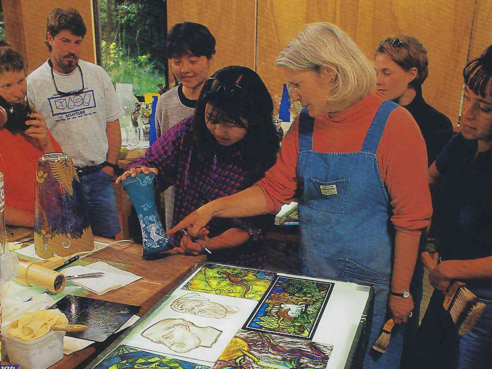 横浜ステンドグラス工房で学んだフランスのクラシックスタイルの絵付けの技法と、アメリカのPilchuck Glass SchoolでCappy Thompson氏に教わったエナメル絵付けの技法を習得しています。
